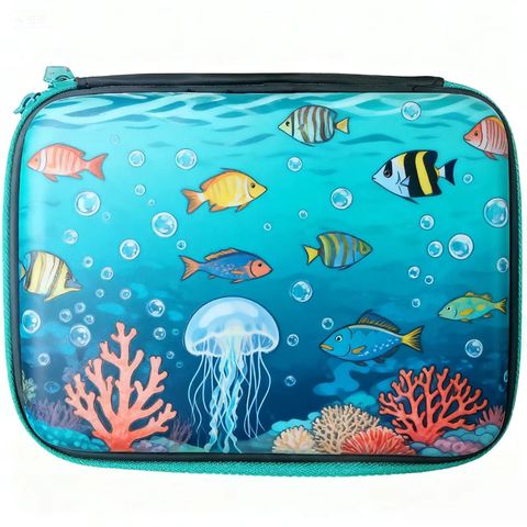 Cartoon Fish and Jellyfish Pencil Case for Kids Waterproof Large Capacity School Storage Pouch Eco-friendly Design